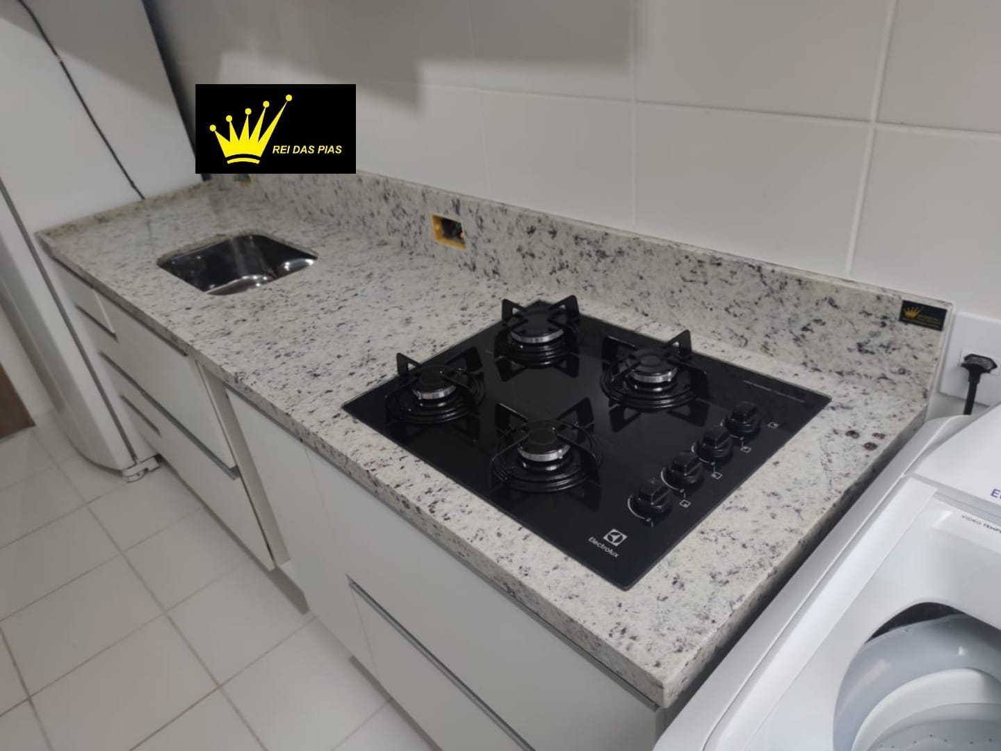 Pia de Cozinha Granito Dallas com Cuba em Inox (aço 430), Cooktop 4 bocas e furação de 3 1/2